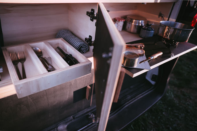 Aménagement complet et entièrement démontable pour "Claude", ce Mercedes Vito L1H1 de 2016.